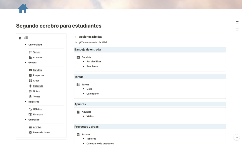 Con esta plantilla, simplificarás tu vida estudiantil y personal, mejorando tu organización y productividad. ¡Empieza a gestionar tu conocimiento y tareas como nunca antes!