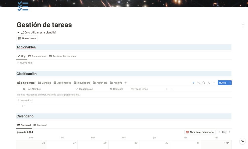Plantilla de gestión de tareas